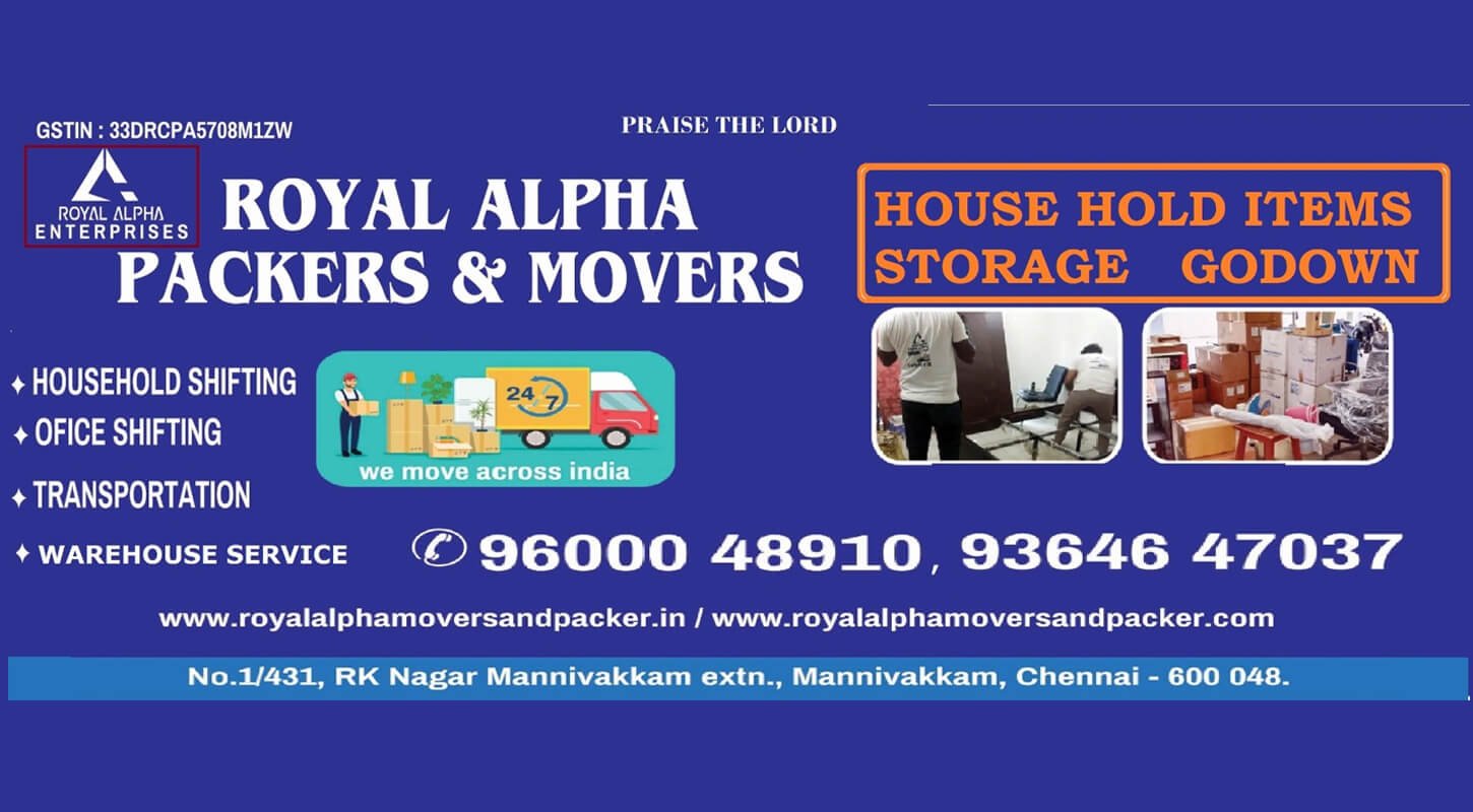Royal Alpha Movers & Packers, established in 2010 in Mannivakkam, Chennai, is a professional and experienced relocation company providing comprehensive moving solutions.